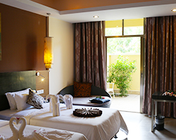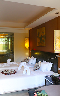 標(biāo)準(zhǔn)客房按東南亞風(fēng)格設(shè)計,裝修豪華、寬敞明亮,所有放假設(shè)施設(shè)備完善,獨立恒溫空調(diào)、二十四小時熱水、室內(nèi)免費電話、獨立保險箱等設(shè)施。