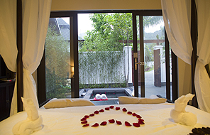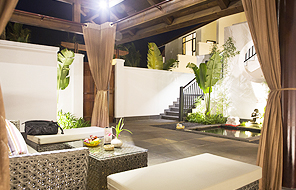 豪華別墅以東南亞風(fēng)格為建筑格調(diào),各棟別墅配有獨立的SPA溫泉池,綠樹掩映。內(nèi)有高挑寬敞的廳堂、亮麗多彩的燈飾、典雅清明的藤木家具、愜意的臥室、造型華貴,頗有豪邁典雅的氣派。